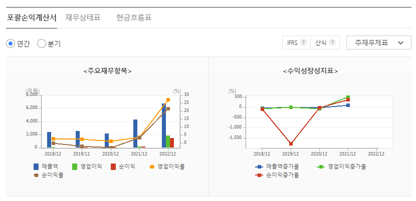 -2023년 3월 연결기준 매출액 2,316억 원, 영업이익 775억 원, 당기순이익 658억 원을 기록. 수출 판매량은 2021년 225천 톤, 2022년 207천 톤을 기록하였으나, 최근 에너지용 강관에 대한 수요가 증가하며 단가 인상의 영향으로 수출 매출액이 큰 폭으로 증가함. 2024년에 50,000톤/년의 생산능력을 보유한 SPIRAL 설비, 2025년에는 180,000톤/년의 생산능력을 보유한 롤벤더 강관 설비를 가동할 예정임.